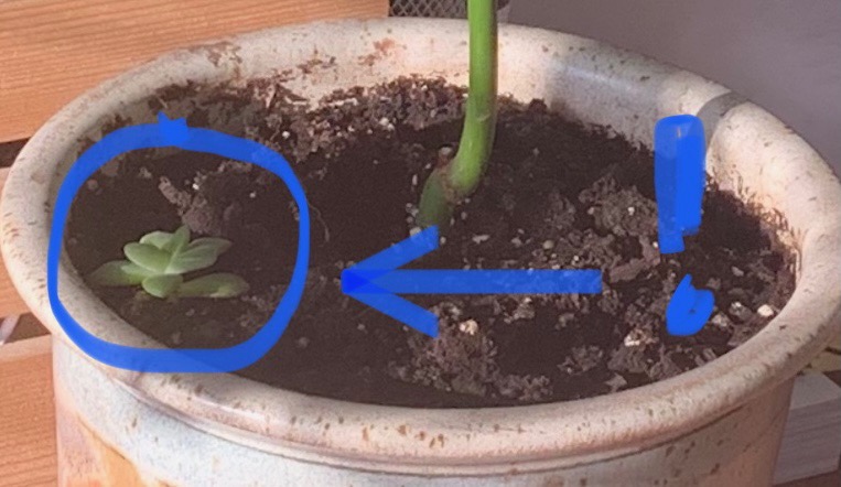 Now the little escapee succulent you see in the bottom of the avocado pot is thriving under the watchful gaze of the avocado. I think sometimes that the little one is actually doing a ‘neener-neener’ to his four brethren over in the fish bowl.