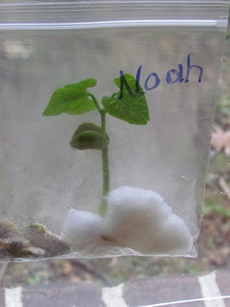 Lima beans seem to be touted as the ‘go to’ project for growing in school (see the fine work of a student named Noah on the right). Just hang the seeds in water or on wet paper towel and watch the magic happen. Everything seems to stop there. Kids go home with soggy beans encased in a wet paper towel and plastic bag only to discover that the dirt from the side of the house and the old coffee cup are not great potting mediums. Sometimes it works, other times not. When it does work you get a bean plant; then what? Were you prepared for the next step, the sticks, supports, trellises and the like that help the plant to fruiting, probably not. Now you have a plant that slowly dies, gets dried out, overwatered and otherwise forgotten.